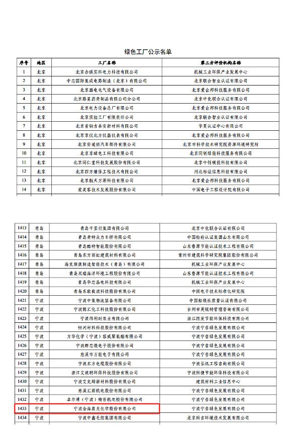 工信部日前公示2023年度國家綠色制造名單,寧波金海晨光化學(xué)股份有限公司(以下簡稱:金海晨光)入選國家級“綠色工廠”公示名單。綠色制造體系是針對符合科學(xué)“綠色發(fā)展”倡導(dǎo)的企業(yè)給出的一種認(rèn)定,目的是深入實施綠色制造工程,加快構(gòu)建綠色制造體系,發(fā)揮綠色制造先進(jìn)典型的示范帶動作用,從而實現(xiàn)產(chǎn)業(yè)全面升級和優(yōu)化。而國家級“綠色工廠”則是綠色發(fā)展榮譽的“天花板”,由縣、市、省各級工信部門按照“優(yōu)中選優(yōu)、寧缺毋濫”的原則層層選拔推薦。