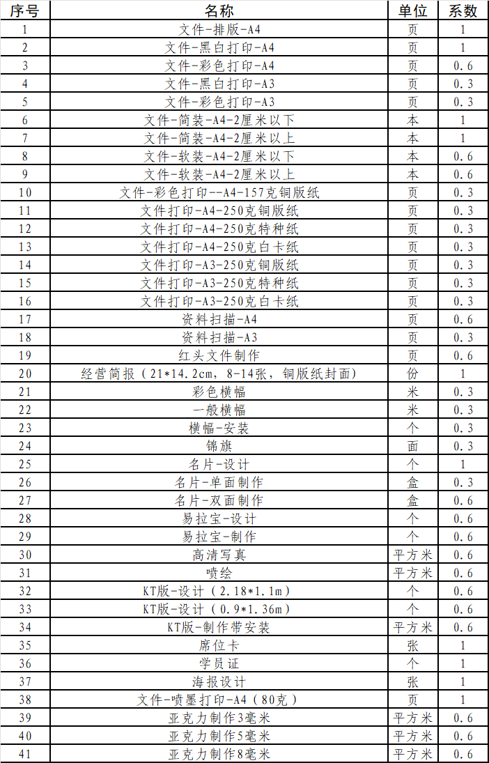 1.采購(gòu)內(nèi)容:選擇一家文印服務(wù)商簽訂服務(wù)協(xié)議,原則上服務(wù)期限不超過(guò)2年,每年續(xù)簽一次,若出現(xiàn)服務(wù)不到位的情況,公司有權(quán)重新采購(gòu)或終止服務(wù)。文印服務(wù)包括但不限于下列清單。