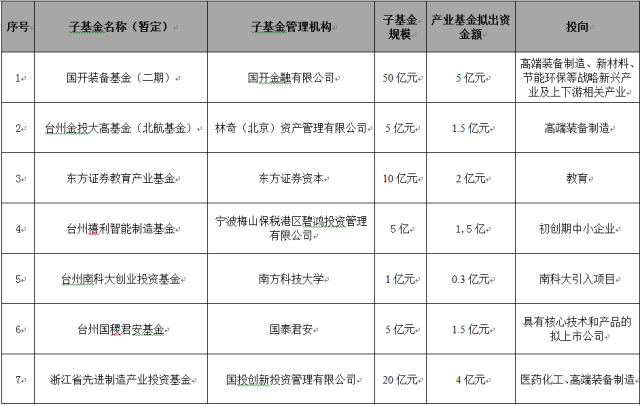 浙江臺州轉(zhuǎn)型升級產(chǎn)業(yè)基金擬設立子基金名單